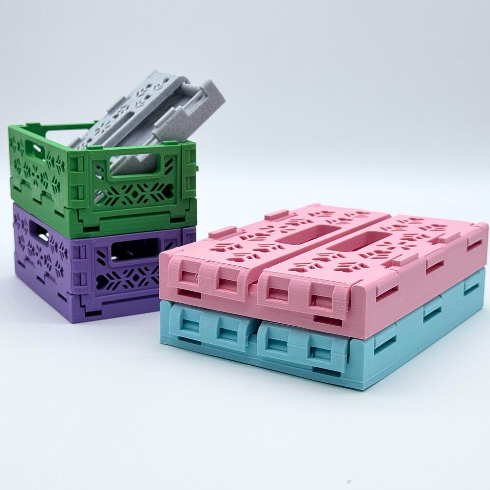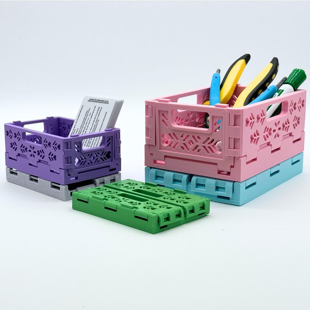 This is the ultimate 3D printable tool for organizing your home, desk, or office. This storage crate is stackable, foldable, and 100% 3D printed. No additional pieces or parts are needed for attachment.